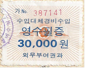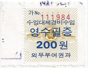After the 1970s several new series of consular revenue stamps were produced, both in won and in dollars. Of the first won value series to date only two values are known. The CR45 is known with a cancellation from either 1981 or 1987, but further information is lacking.
