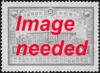 Seoul local revenue, 500 won, purple, perforated, 1962-1975. The 500 won value from the first won values series in use between 1969 and 1975 within the Seoul area.